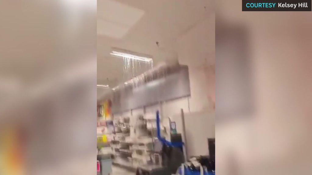 Water began pouring through the ceiling and shoppers were evacuated.