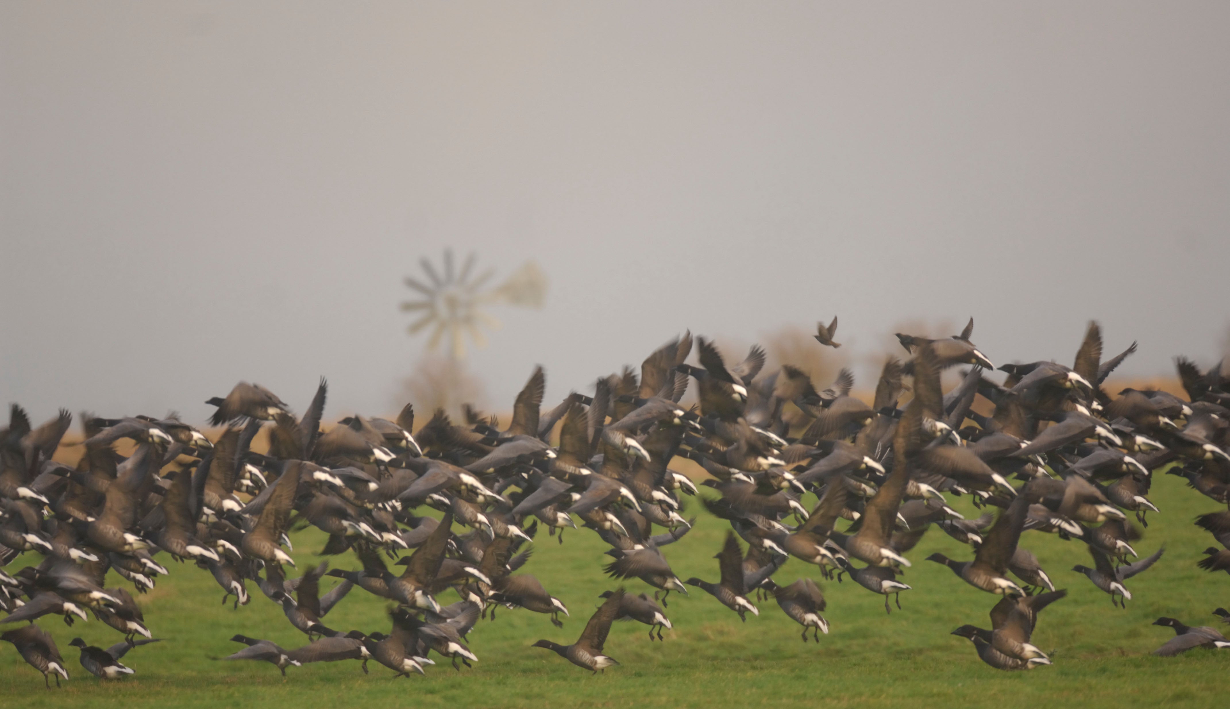Grazed by cattle and sheep for over 400 years, Old Hall Marshes Nature Reserve is a refuge for many wetland bird species including dark-bellied brent geese who overwinter here.