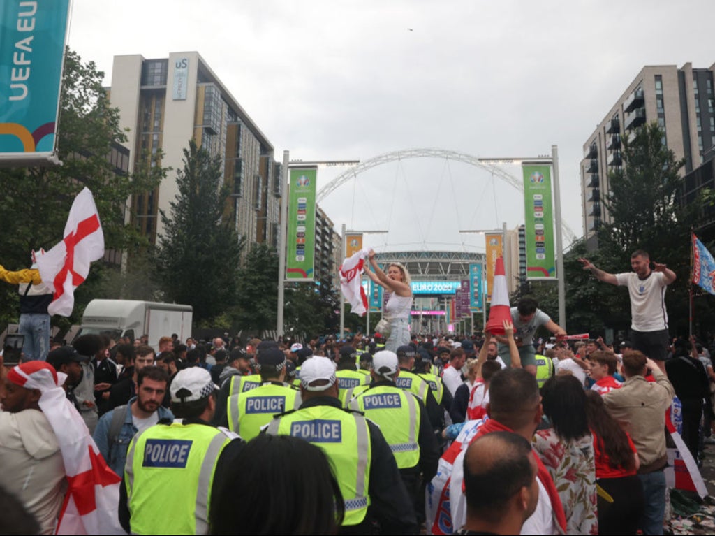 A volunteer stationed outside the ground told The Independent: “There were thousands on the steps near Wembley Way that bomb-rushed the barriers and broke through. It looked so co-ordinated as it happened in one big move as soon as God Save The Queen started.