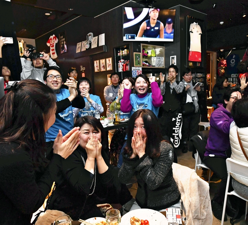 About 70 fans flocked to the sports bar "B ONE" in the Ginza district of Tokyo to view the match on a big screen.