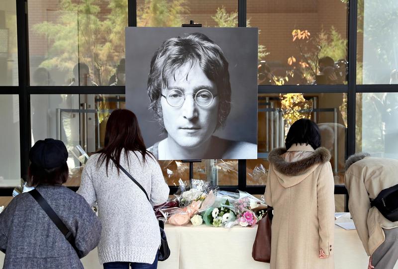 Fans offered prayers and flowers at a table set up at an exhibition about John Lennon and his wife Yoko Ono in Tokyo on Tuesday, the 40th anniversary of the iconic musician's death.