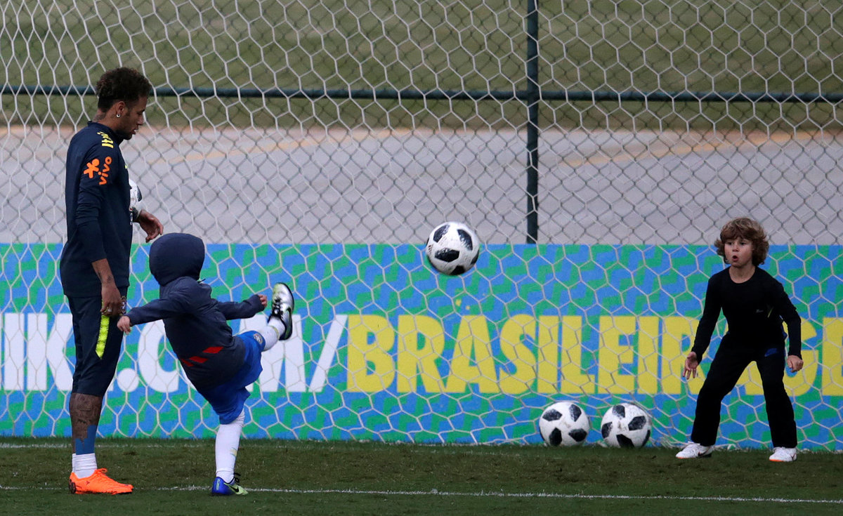 Football Soccer - Brazil national soccer team training - World Cup 2018 - Granja Comary, Teresopolis, Brazil - May 25, 2018 - Neymar plays with his kid Davi Lucca. REUTERS/Ricardo MoraesFootball Soccer - Brazil national soccer team training - World Cup 2018 - Granja Comary, Teresopolis, Brazil - May 25, 2018 - Fans gather outside the training center as they try to enter. REUTERS/Ricardo MoraesFootball Soccer - Brazil national soccer team training - World Cup 2018 - Granja Comary, Teresopolis, Brazil - May 25, 2018 - Neymar and Filipe Luis in action. REUTERS/Ricardo MoraesFootball Soccer - Brazil national soccer team training - World Cup 2018 - Granja Comary, Teresopolis, Brazil - May 25, 2018 - Marquinhos and head coach Tite talk with fans. REUTERS/Ricardo MoraesFootball Soccer - Brazil national soccer team training - World Cup 2018 - Granja Comary, Teresopolis, Brazil - May 25, 2018 - Fans gather outside the training center as they try to enter. REUTERS/Ricardo MoraesFootball Soccer - Brazil national soccer team training - World Cup 2018 - Granja Comary, Brazilian Soccer Confederation training center, Teresopolis, Brazil - May 25, 2018 - Head coach Tite attends a training. REUTERS/Ricardo MoraesFootball Soccer - Brazil national soccer team training - World Cup 2018 - Granja Comary, Teresopolis, Brazil - May 25, 2018 - Neymar and head coach Tite talk with fans. REUTERS/Ricardo Moraes