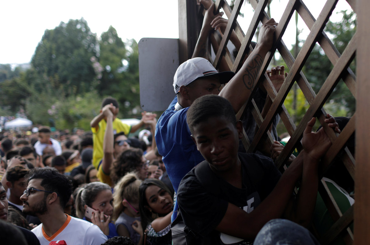 Football Soccer - Brazil national soccer team training - World Cup 2018 - Granja Comary, Teresopolis, Brazil - May 25, 2018 - Fans gather outside the training center as they try to enter. REUTERS/Ricardo Moraes