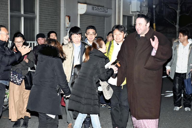 A horde of fans of Georgia-born Tochinoshin descended on the Kasugano stable in Sumida Ward, Tokyo, to celebrate the wrestler's victory in the New Year Grand Sumo Tournament on Saturday.