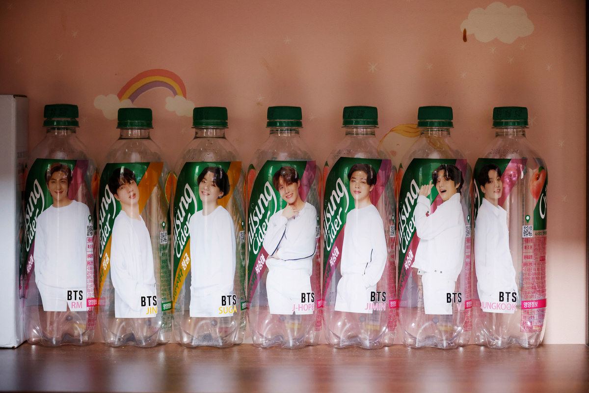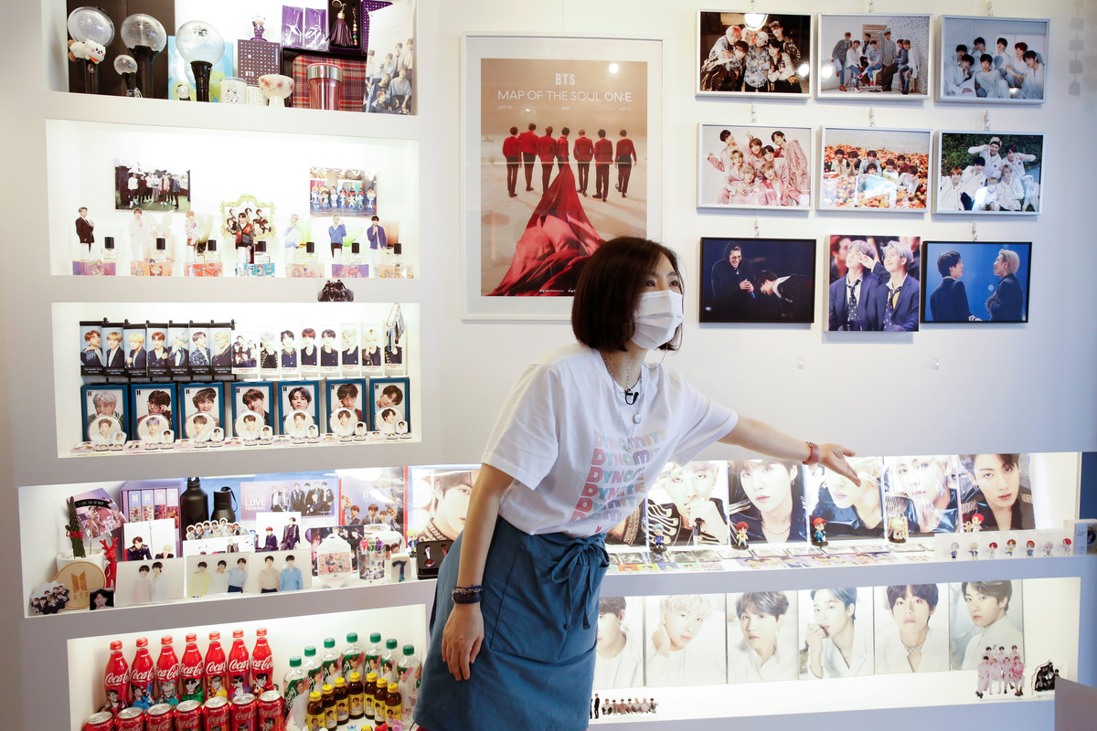 "I'm adding my support to BTS by buying shares; it will add onto my collection here," the 51-year-old said in the BTS-themed cafe she runs in Seoul, which is filled with BTS merchandise, from a 47-inch wide photo of band member Jin to toys designed by the group.