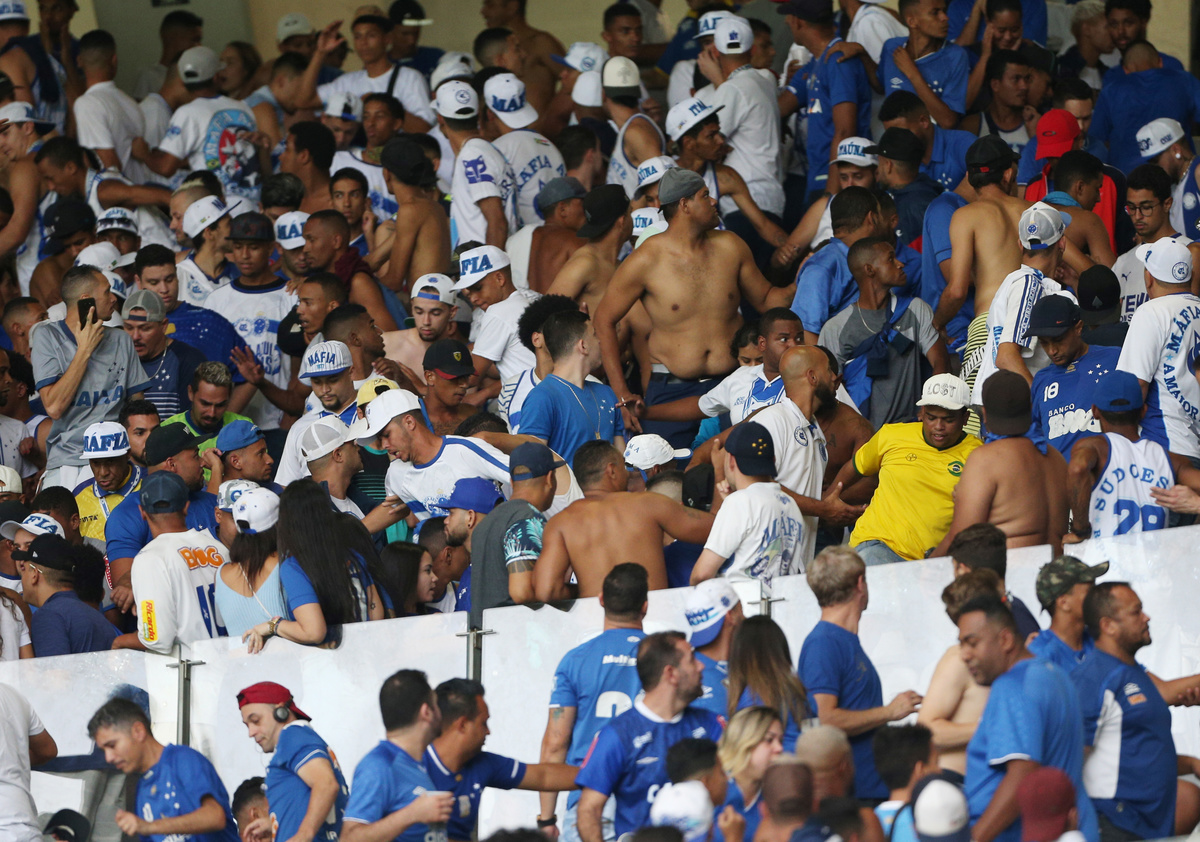 Soccer Football - Brasileiro Championship - Cruzeiro v Palmeiras - Mineirao Stadium, Belo Horizonte, Brazil - December 8, 2019 Cruzeiro players watch the clashes between the riot police and fans REUTERS/Cristiane MattosSoccer Football - Brasileiro Championship - Cruzeiro v Palmeiras - Mineirao Stadium, Belo Horizonte, Brazil - December 8, 2019 Corinthians' Matheus Jesus in action with Palmeiras' Lucas Lima REUTERS/Cristiane MattosSoccer Football - Brasileiro Championship - Cruzeiro v Palmeiras - Mineirao Stadium, Belo Horizonte, Brazil - December 8, 2019 Palmeiras' Ze Rafael in action with Cruzeiro's Henrique REUTERS/Cristiane MattosSoccer Football - Brasileiro Championship - Cruzeiro v Palmeiras - Mineirao Stadium, Belo Horizonte, Brazil - December 8, 2019 Palmeiras' Marcos Rocha in action with Cruzeiro's Ezequiel REUTERS/Cristiane MattosSoccer Football - Brasileiro Championship - Cruzeiro v Palmeiras - Mineirao Stadium, Belo Horizonte, Brazil - December 8, 2019 Palmeiras' Lucas Lima in action with Cruzeiro's Weverton REUTERS/Cristiane MattosSoccer Football - Brasileiro Championship - Cruzeiro v Palmeiras - Mineirao Stadium, Belo Horizonte, Brazil - December 8, 2019 Cruzeiro fans before the match REUTERS/Cristiane Mattos