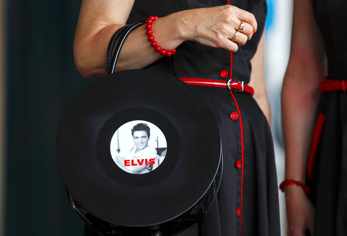 An Elvis Presley fan holds a handbag as she prepares to board the Elvis Express train at Sydney's Central station before it departs for the 26th annual Elvis Festival being held in the New South Wales town of Parkes in Australia, January 11, 2018. REUTERS/Daniel Munoz