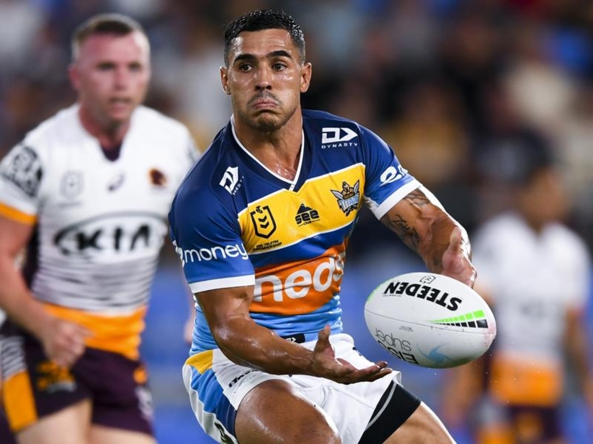 The Titans co-captain was in the clear with the tryline looming during the clash with the Raiders at CBUS Super Stadium in August only for the 120kg prop to run him down and ankle tap him with a desperate dive.
