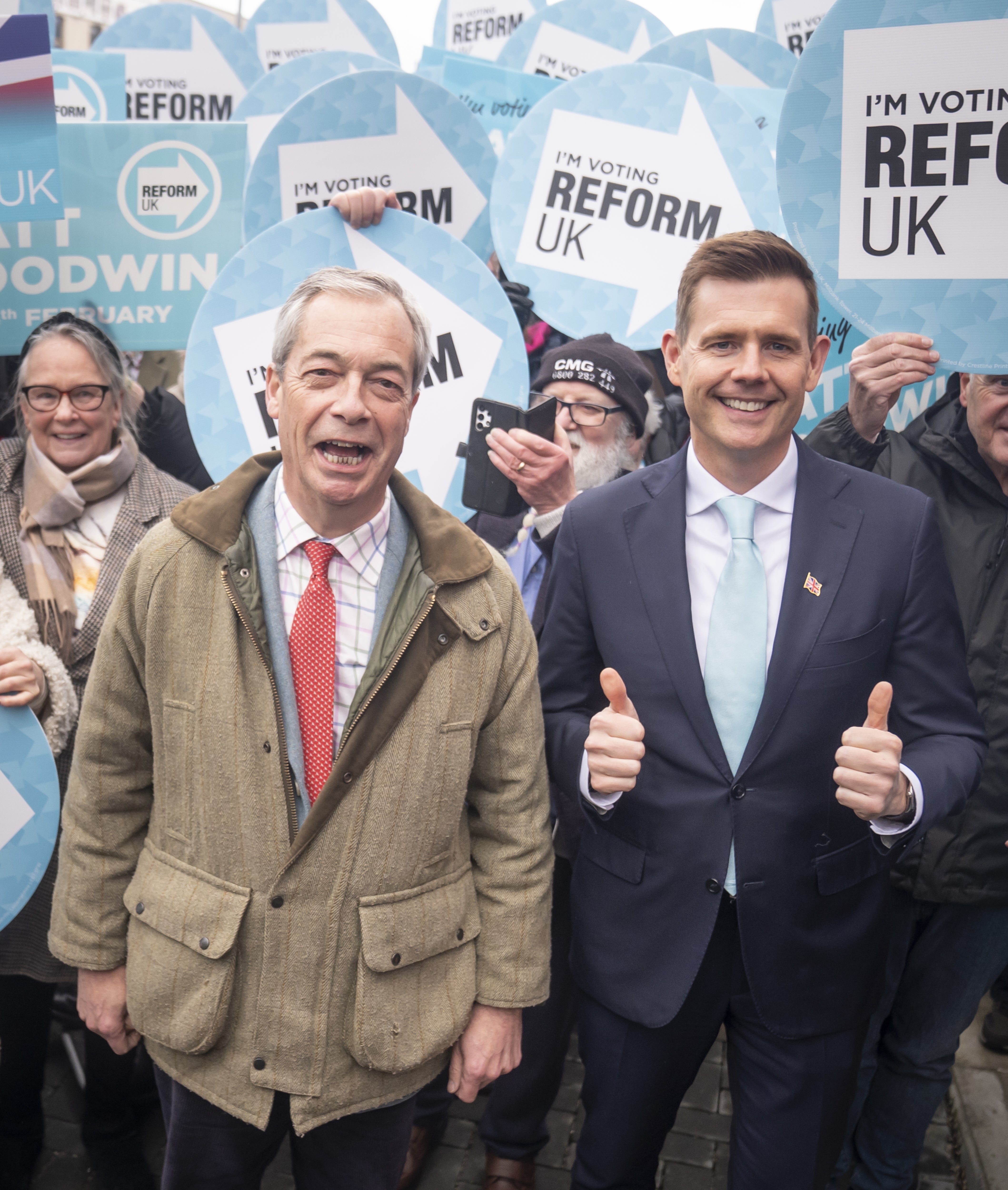 Mr Farage opened the campaign offices for Reform UK in Denton, alongside his party’s candidate, Matt Goodwin, and around 100 party faithful.