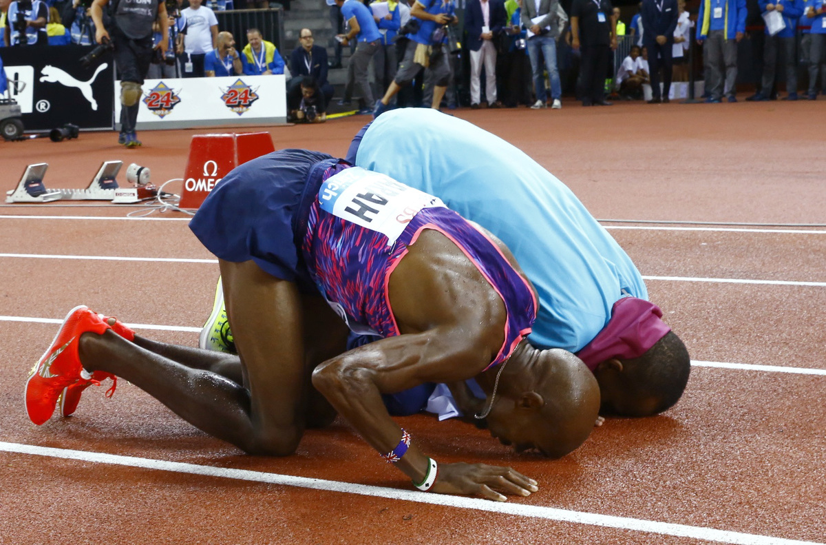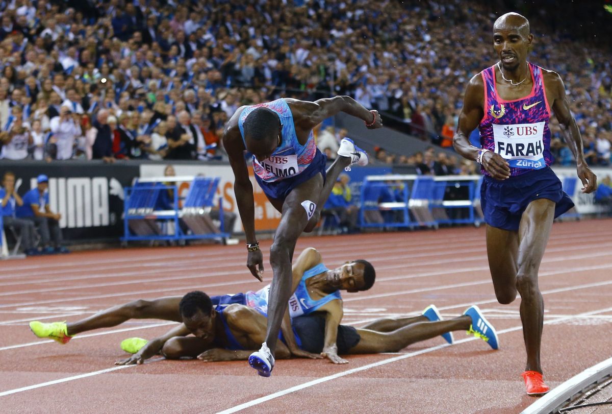 World champion Muktar Edris, who beat Farah at the World Championships in London two weeks ago, was among the trio left sprawled on the track in the Briton's wake as Farah dived over the line.