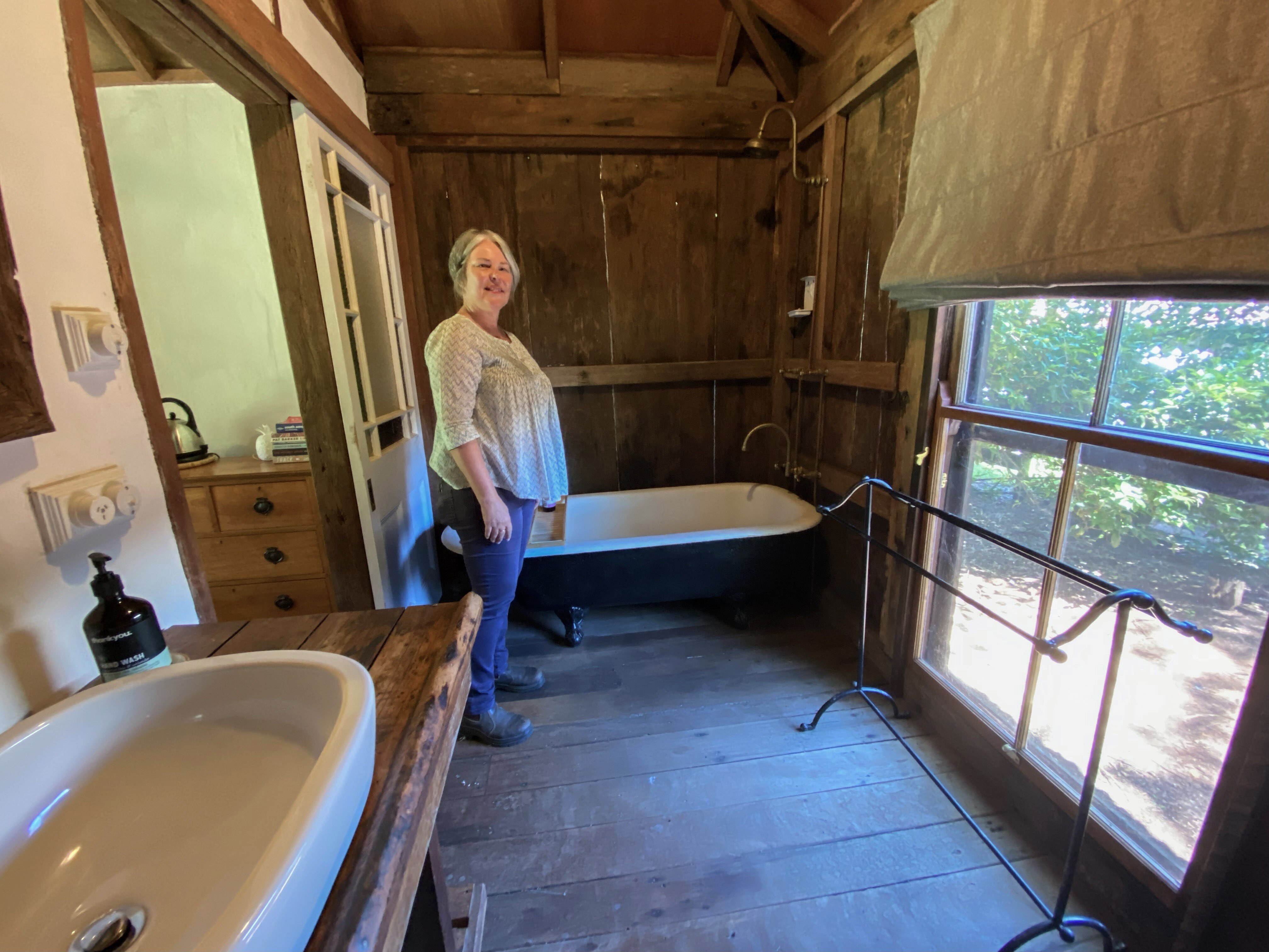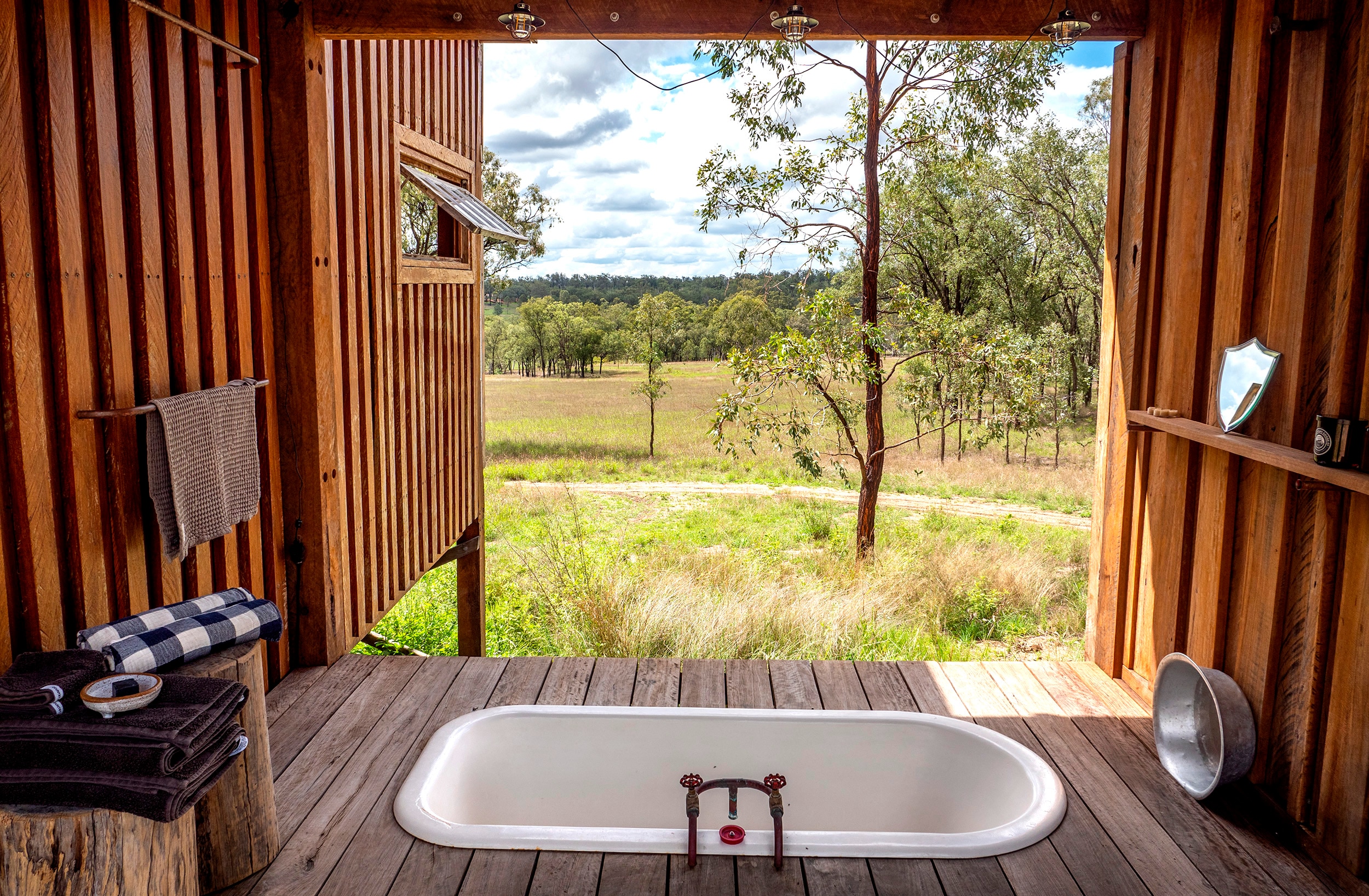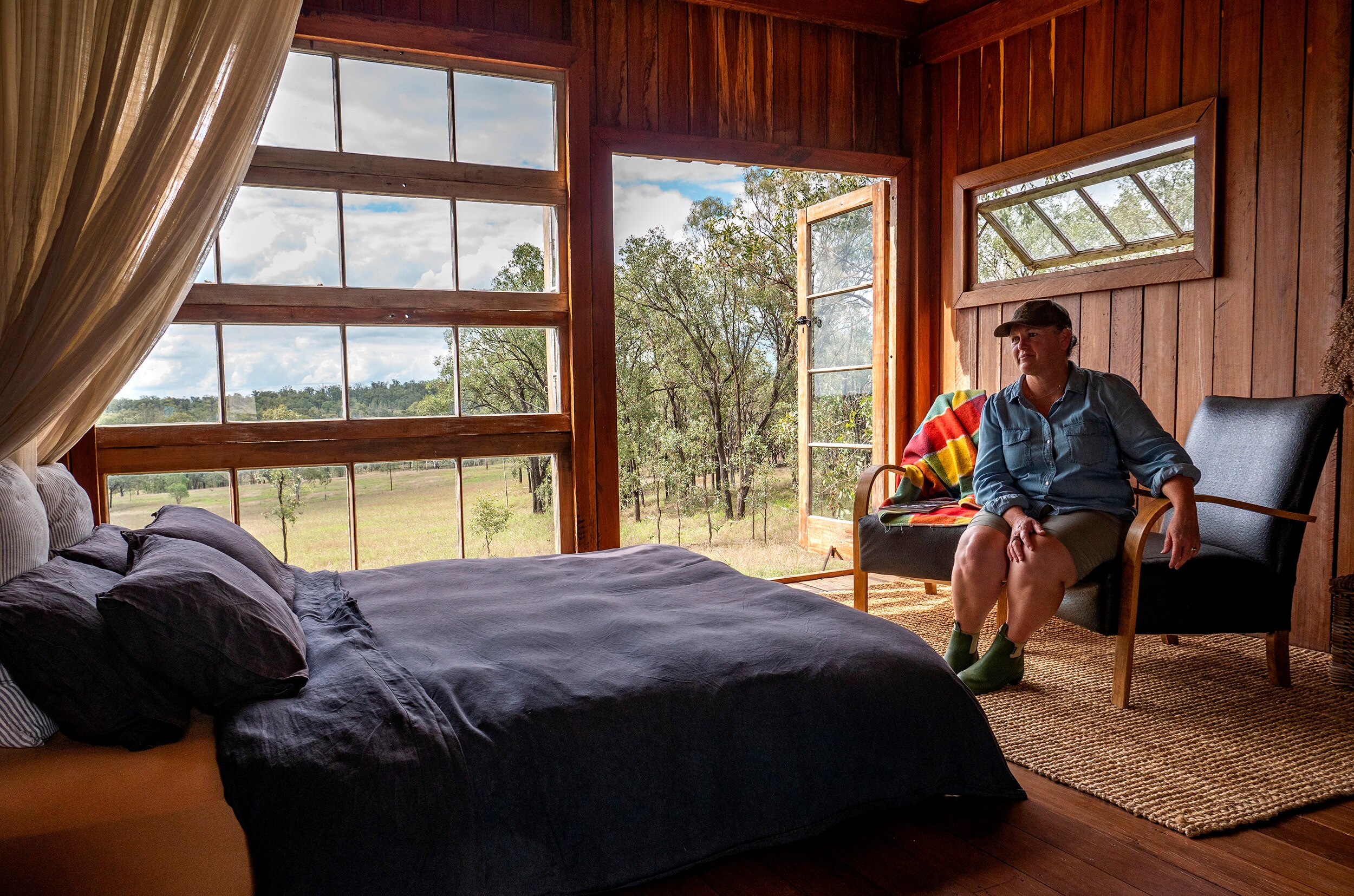 The glamping style cabin was designed by fifth-generation farmer Ms Burnham-Baker and was built using sustainable timber sourced from the property.