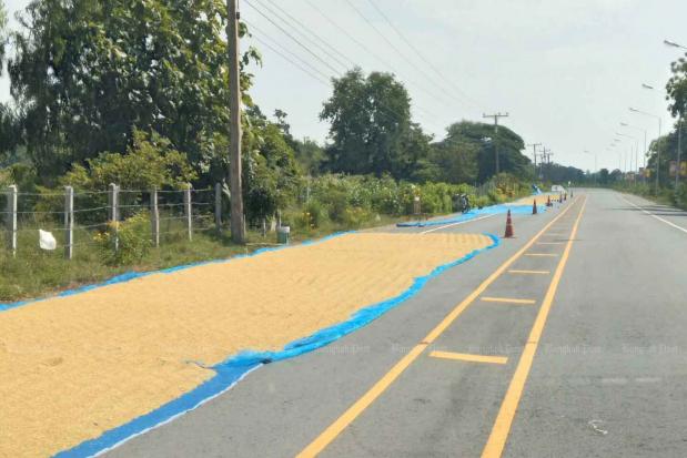 Farmers were seen drying their paddy on roads and even on bridges in Phimai and nearby districts on Wednesday.