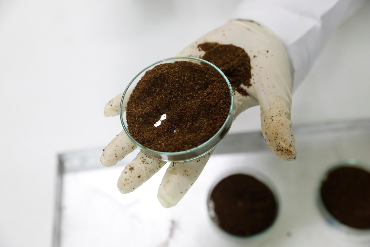 The insects are crushed and dried, then milled and processed into powder, which is used in animal feed or an organic fertiliser.