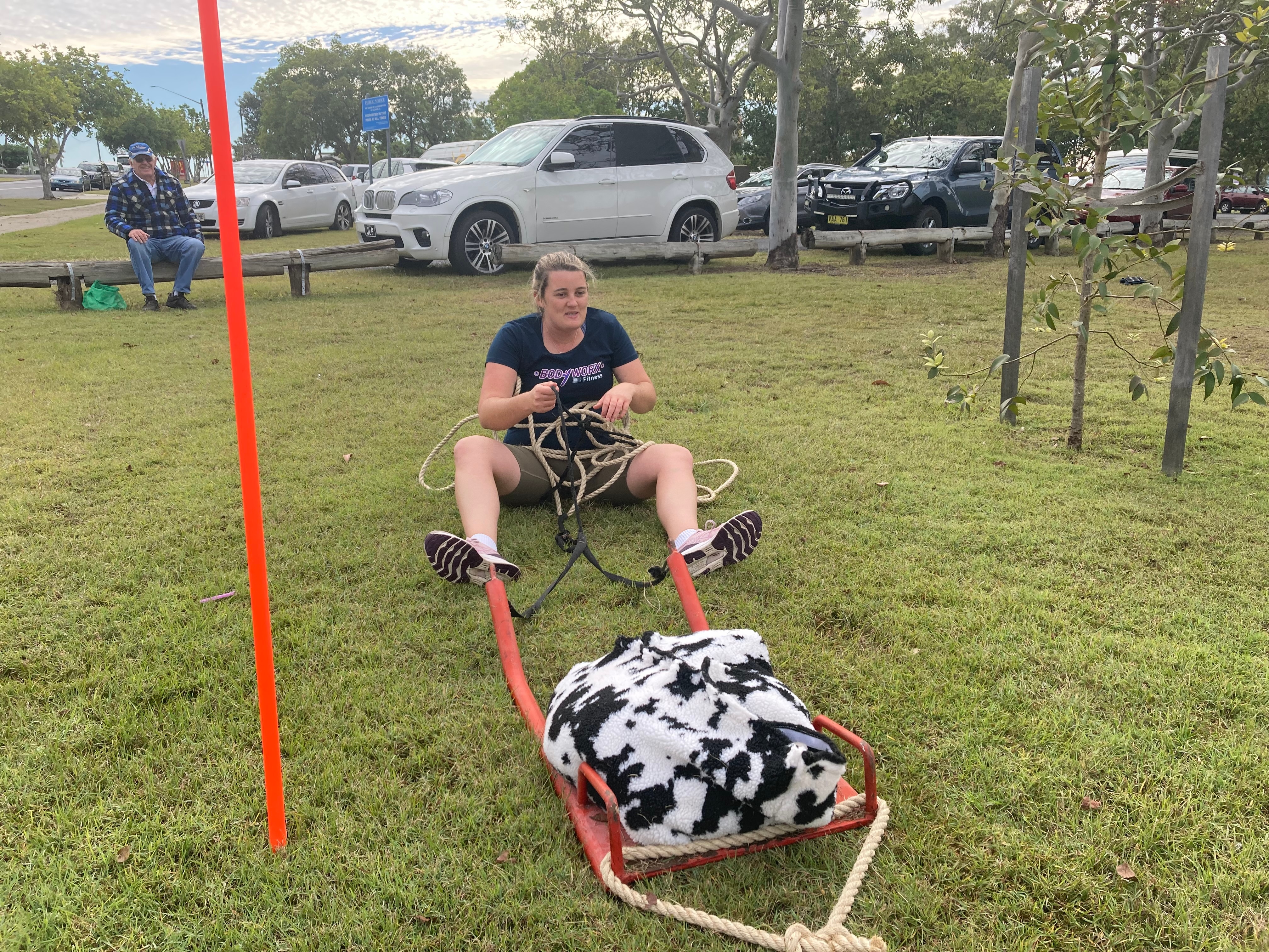 They included dragging a weighted sled (don't pull a calf!), moving bales of hay, driving in fence posts and rolling tyres.
