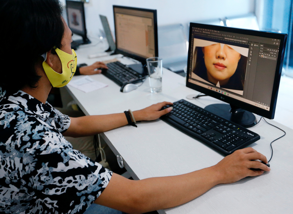 Customers place orders online and upload their pictures. Masks take 30 minutes to produce and each cost 50,000 rupiah ($3.50), income that has kept Nicholas Septian Sugandi's business afloat.