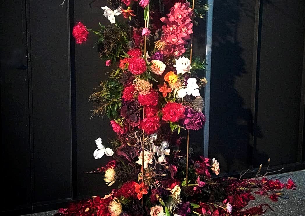 Hobart-based florist The Floral Criteria designed the displays, while Hobart printing house Inkpot studios printed Heap's floral designs onto fabric.