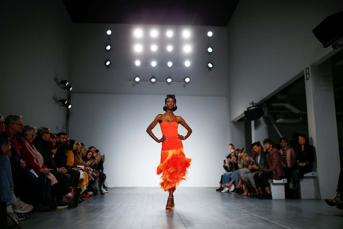 A model presents a creation during the Mark Fast show at London Fashion Week Women's A/W19 in London, Britain February 15, 2019. REUTERS/Henry Nicholls