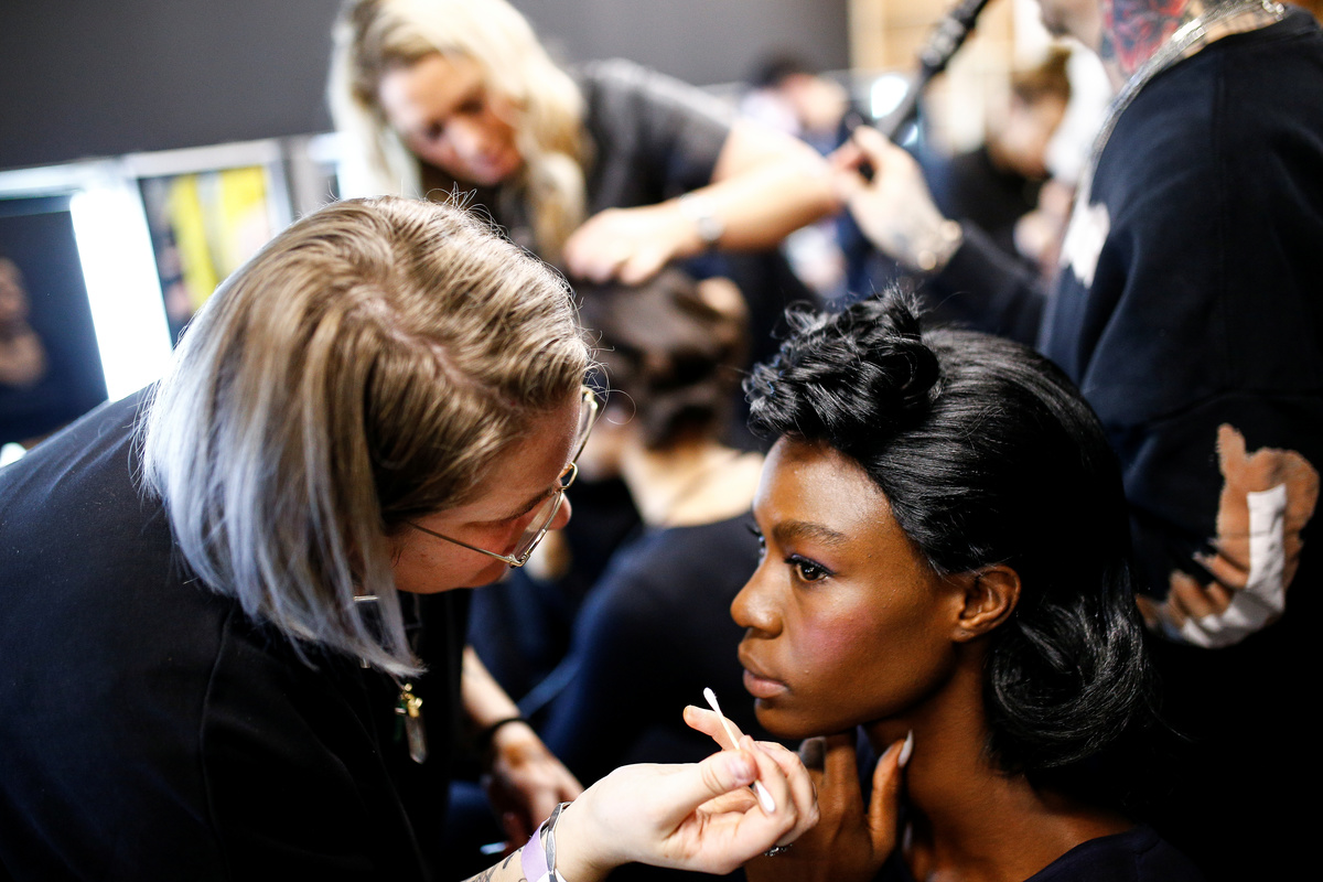 Models are seen backstage before the Mark Fast show at London Fashion Week Women's A/W19 in London, Britain February 15, 2019. REUTERS/Henry Nicholls