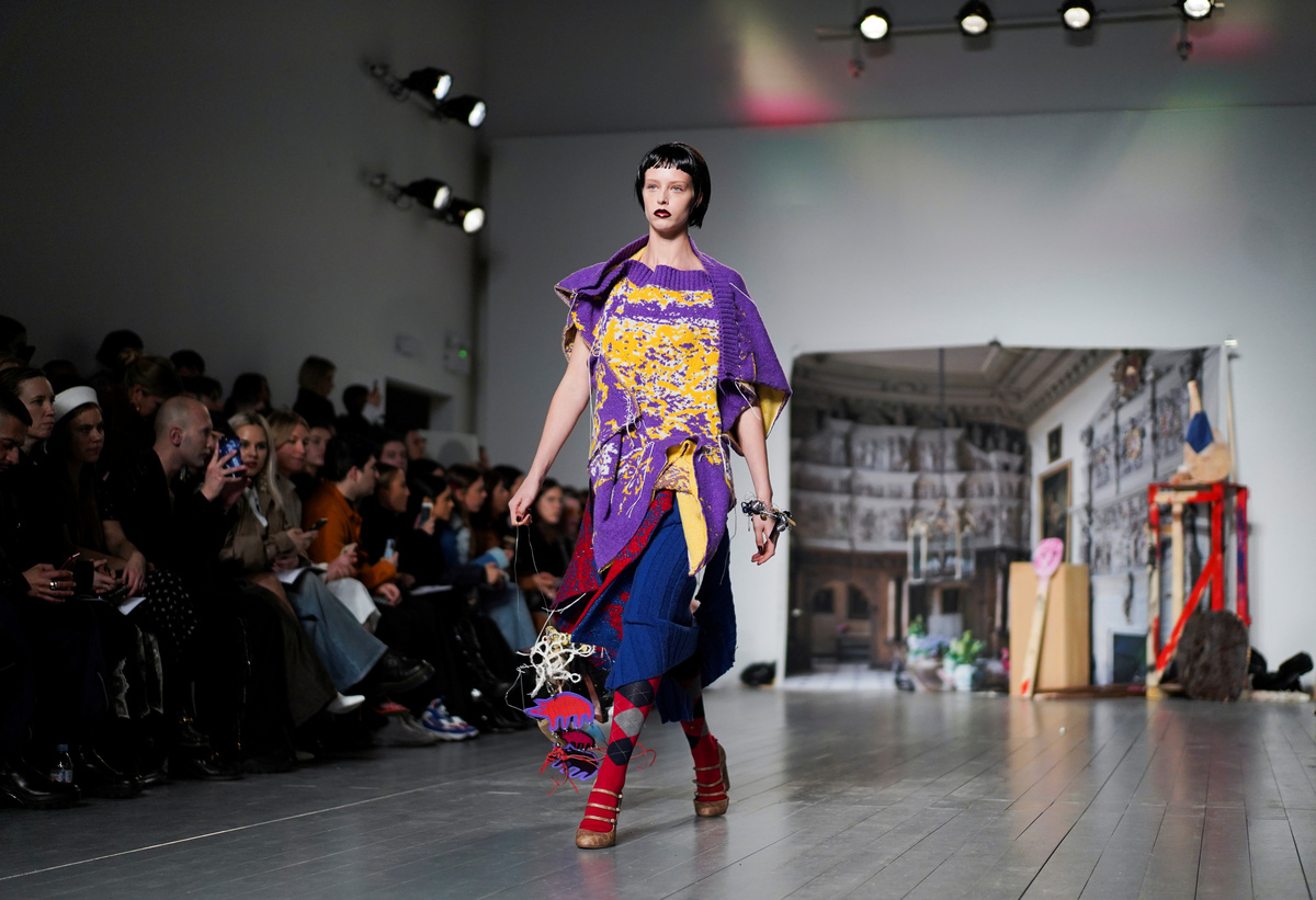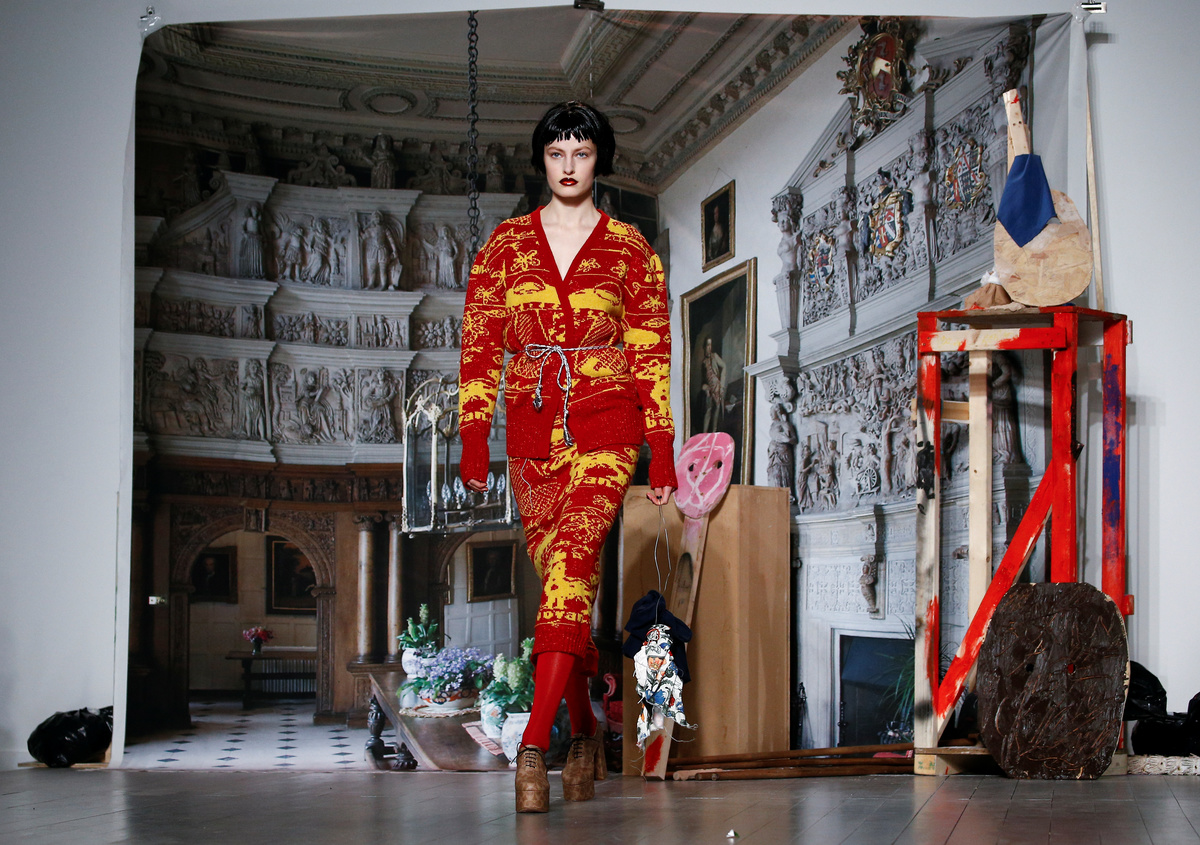 Meanwhile, Matty Bovan said his eclectic collection of colorful prints, tapestry-like knitwear and crinoline skirts was an "ode to England".