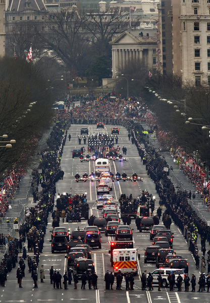 Washington is crawling with security for giant protests and counterdemonstrations planned throughout Friday and Saturday, and calls for resistance against Trump mark light poles and utility boxes across the city.
