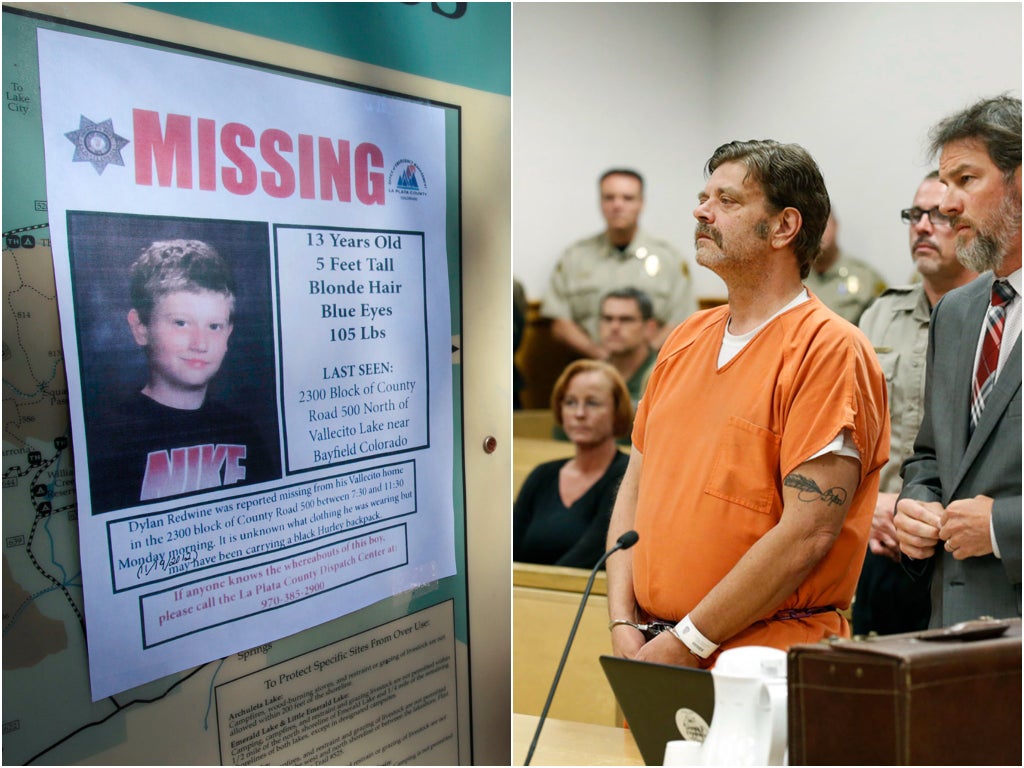 Some of Dylan’s bones were found in June 2013 in a steep area several miles from Mr Redwine’s home. The spot was near a mountain road, an ATV trail, and not far from a footpath, according to La Plata County sheriff’s Sergeant Martin Brenner, who testified on Tuesday.