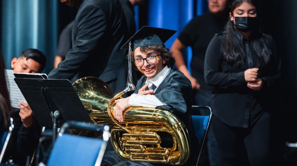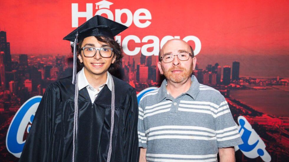 James Garcia cheered as his son accepted his high school diploma at the Arie Crown Theater earlier this month. They arrived about two hours early so Logan Garcia could rehearse the tuba with his bandmates.