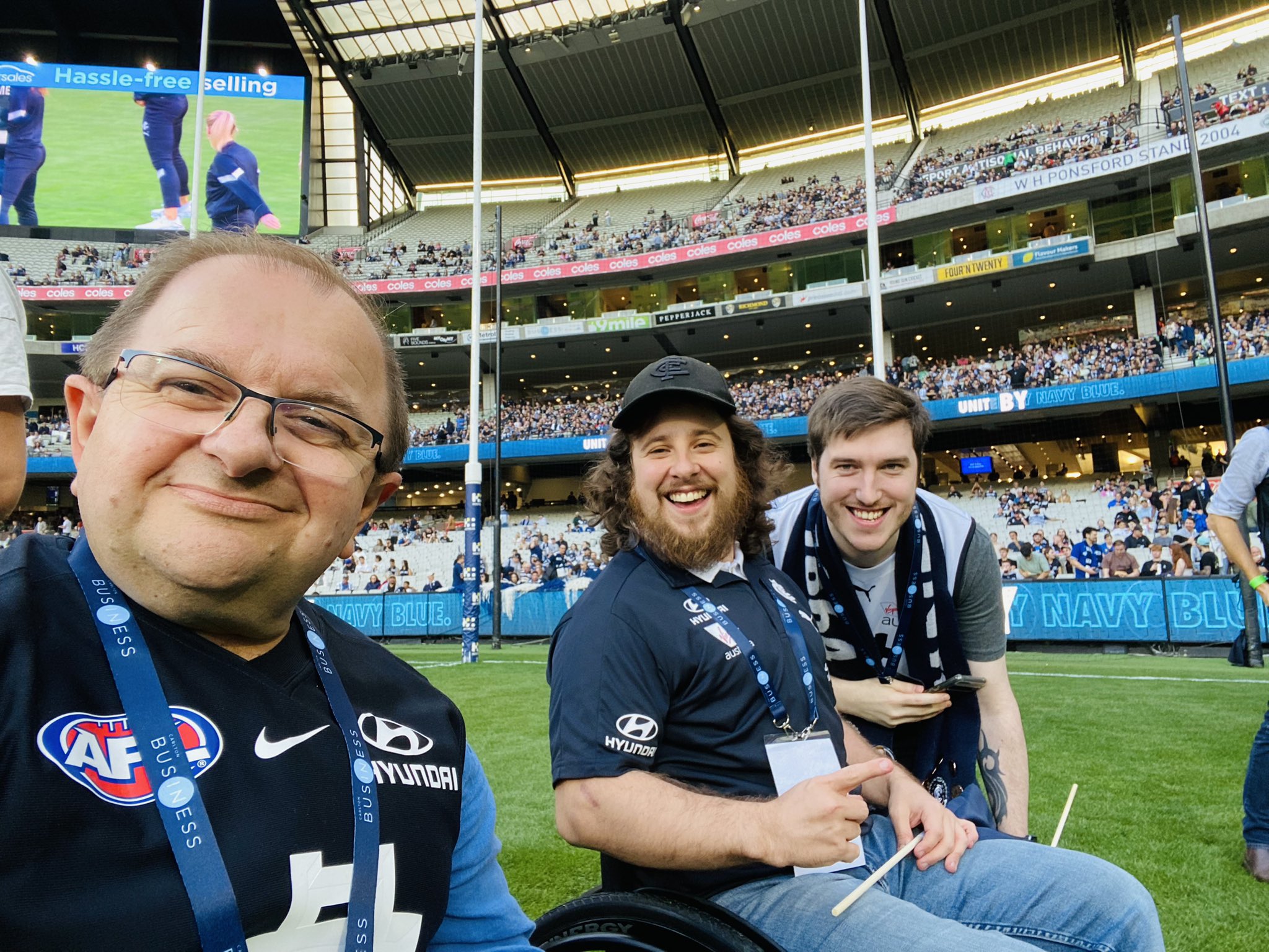 Instead, the avid Carlton supporters found Fox Footy and 7Sport TV commentary panels were set up there, covering many of the wheelchair bays.