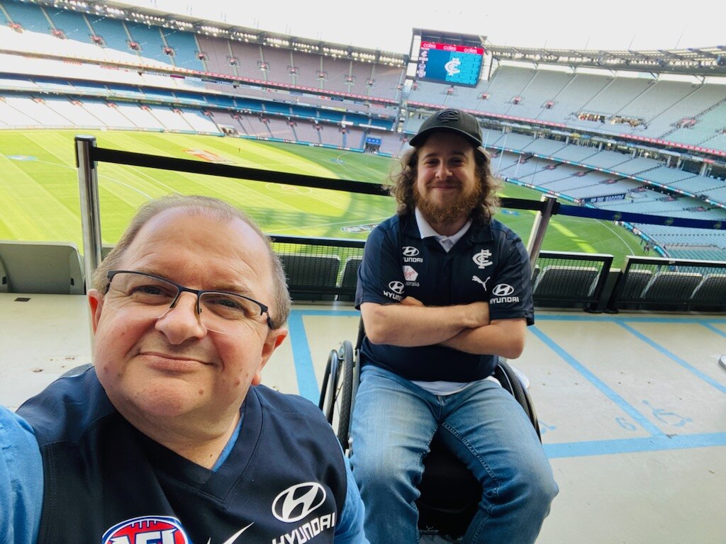 Darren Cunningham and James Williams attended a round one match at the MCG between Richmond and Carlton last week and went to the Olympic Stand on level four with general admission tickets.