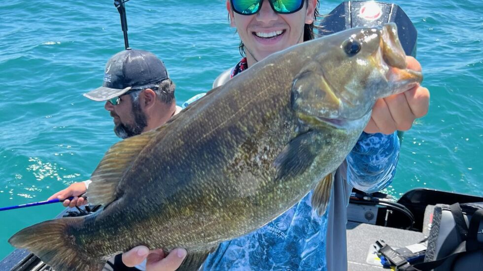 ‘‘First day of pre-fishing St. Clair, first time ever, practicing for the first event of the BFL and was about to head in for the day,’’ he said. ‘‘Caught a 6.34-pound smallmouth. Best fish catch of my life.’’