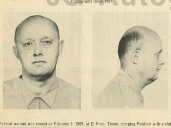 Paddock Senior spent almost a decade on the run after he was sprung from a Texan prison in 1968, with an FBI poster describing him as a “psychopath” who should be treated as “armed and very dangerous”.