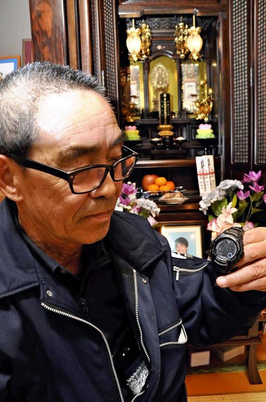 Last year, Makoto's belongings were returned to his father. They include his shoes, personal computer and watch. The watch shows the Dhaka time and is still running. Some of the belongings are stained with what is believed to be dried blood or mud. Komakichi displays all of them in Makoto's room.