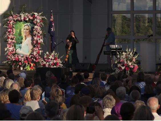 Hundreds of people, many wearing heart-shaped stickers, attended the event. An Australian flag was displayed on a stage next to Ms Damond's picture.