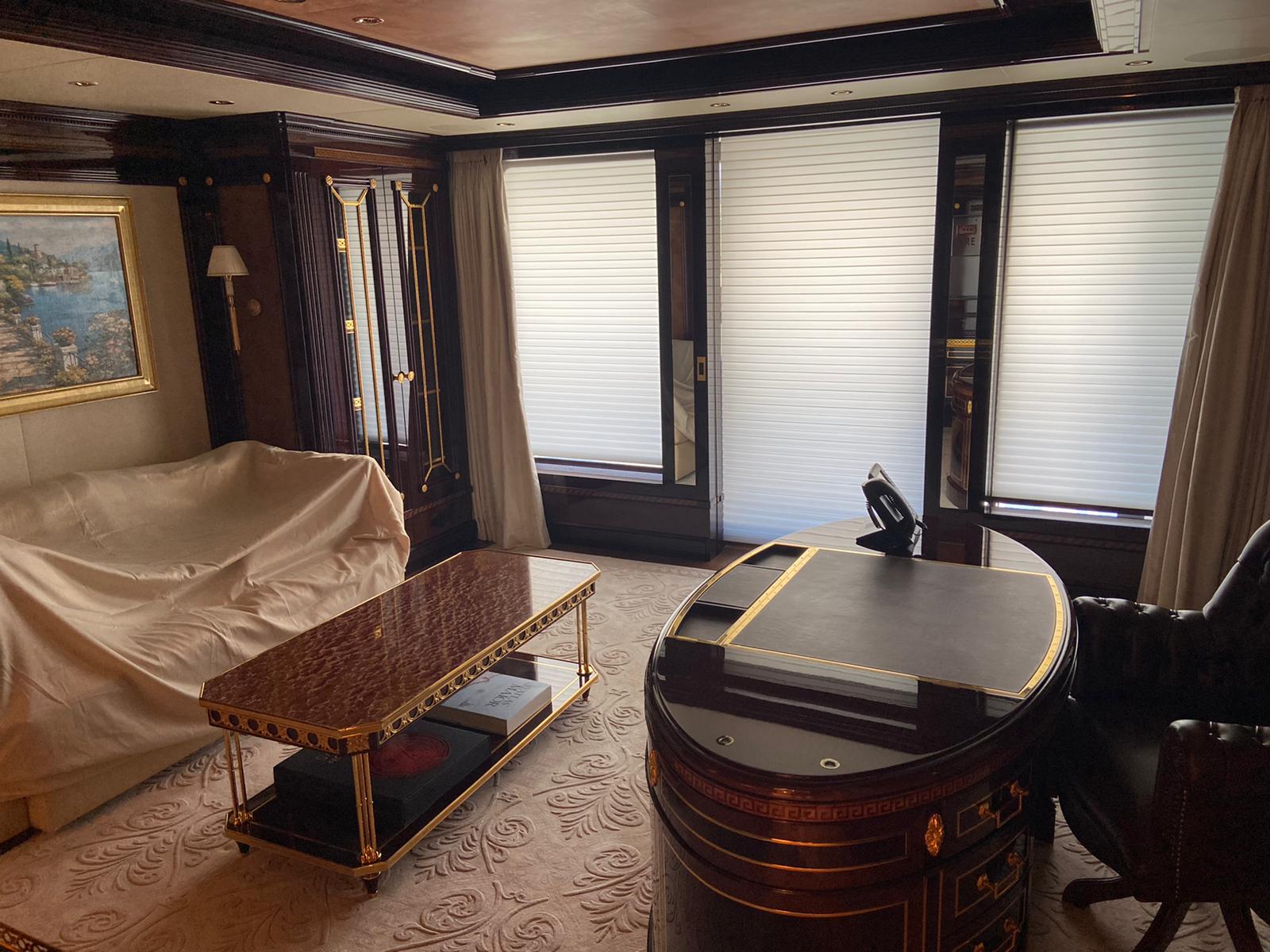 But the ABC has obtained videos and photos taken onboard the superyacht and the vessel appears to be completely packed up, with furniture under dust covers and cupboards empty.