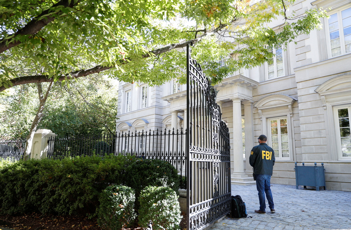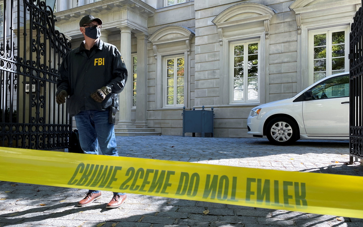 In Washington, FBI agents sealed off and searched a mansion in one of the U.S. capital's wealthiest neighborhoods, carrying boxes out of the house, which had yellow "CRIME SCENE DO NOT ENTER" tape across the front, and towing away a vehicle.