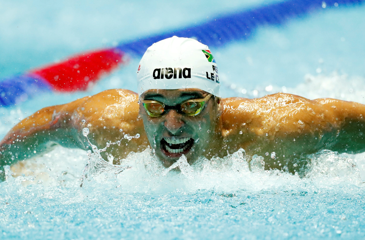Former Olympic butterfly champion Chad le Clos is trying to make the best of the situation by tethering himself to a bungee cord as he swims in his own small backyard pool in Cape Town.