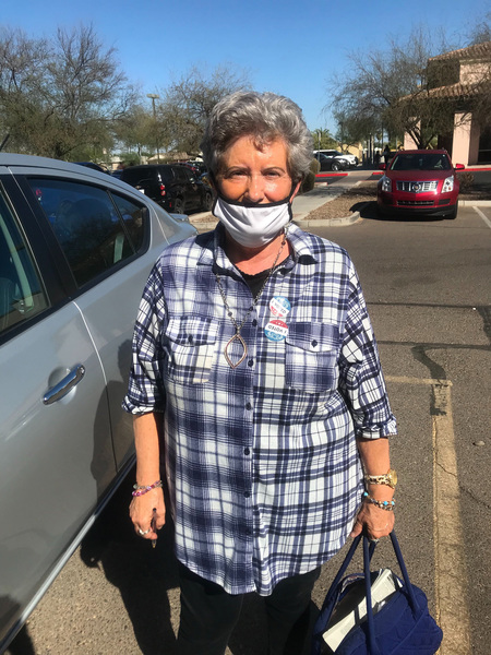 "I'm afraid this time they're going to try to stop the count," she said, wearing a face mask decorated with cactuses before casting her ballot for Biden in Scottsdale. "So I decided I'm going to vote early."