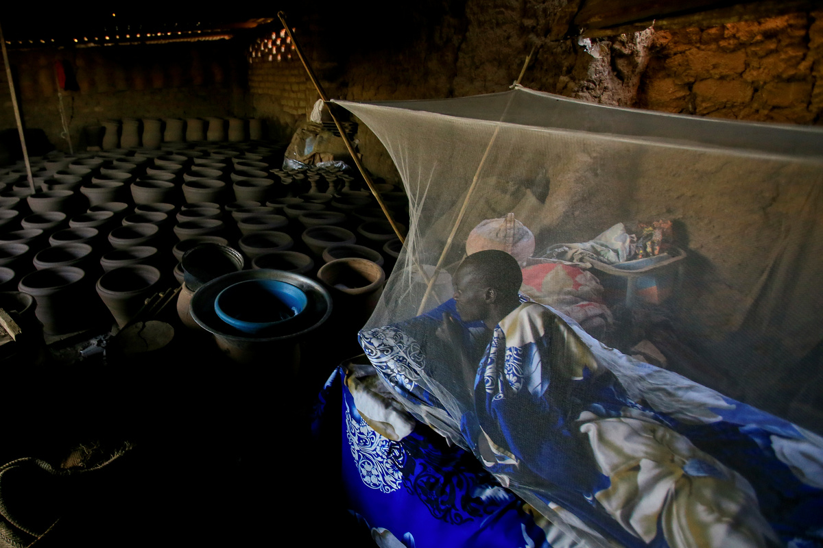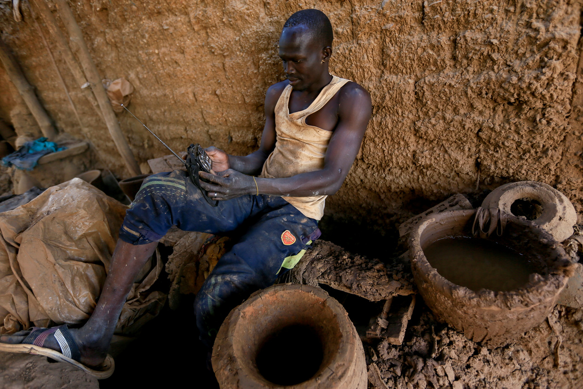 David Plantino, 35, a pottery maker from South Sudan, listens to the radio as he rests at the pottery factory where he works, near the banks of the Nile River in Omdurman, Sudan, February 18, 2020. REUTERS/Mohamed Nureldin Abdallah
