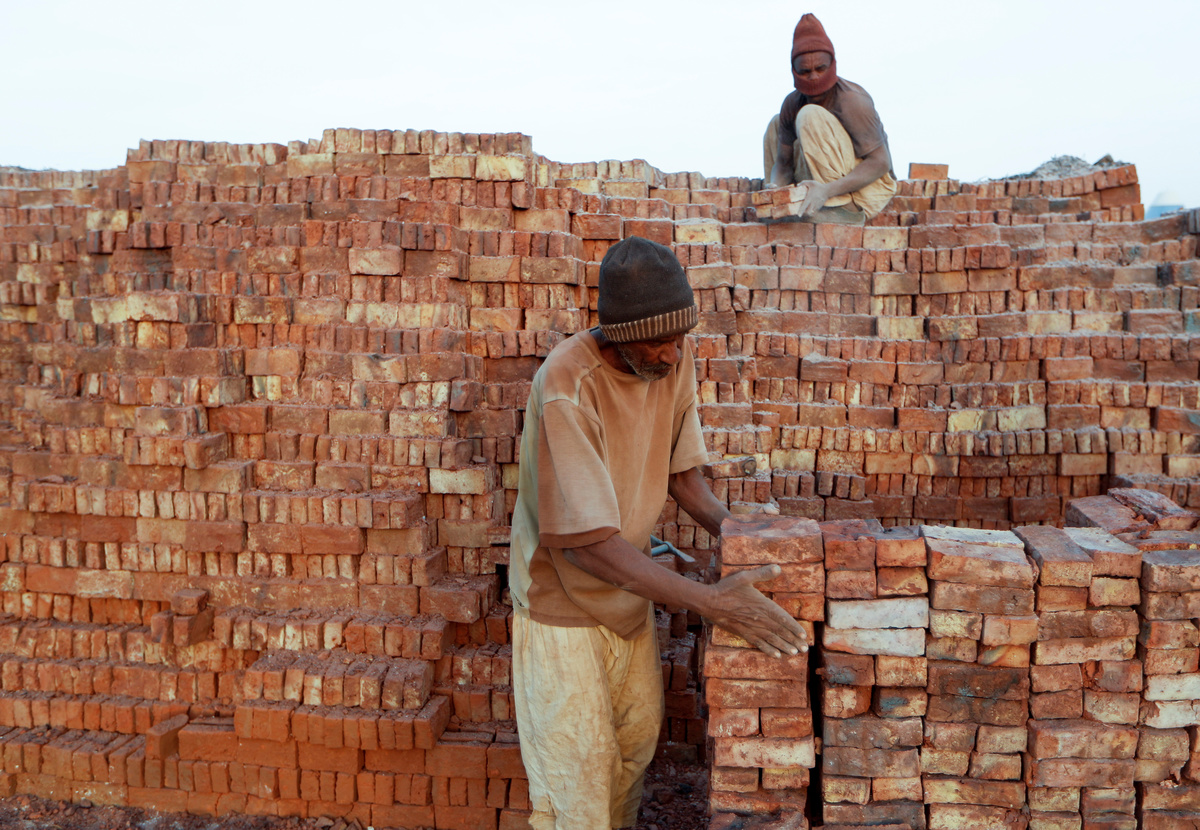 Mohamed Ahmed al Ameen (L), 55, and Mustapha (R), 60, who are both brick makers, prepare bricks to be fired in a kiln at an open-air factory on Tuti Island, Khartoum, Sudan, February 12, 2020. REUTERS/Zohra Bensemra