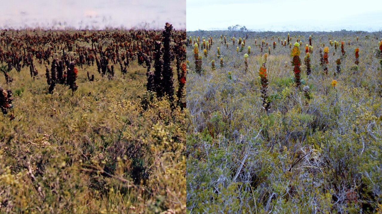 "Is it because the plants aren't old enough with a big enough seed bank when the fire comes through, or is it because after the fire there's a drought and the seeds do germinate but don't come back afterwards?"