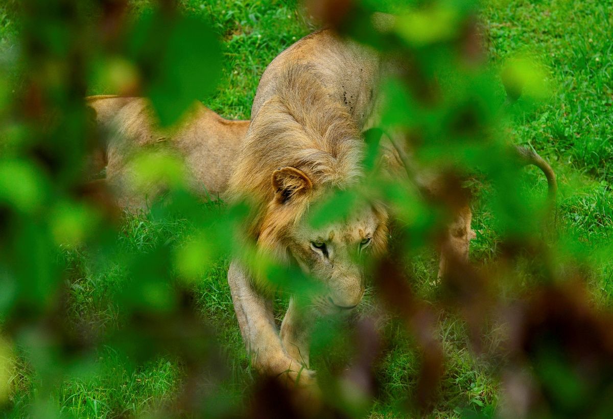 A lion and a lioness are seen at the Uganda Wildlife Conservation Education Center (UWEC) amid the lockdown as part of the measures taken to prevent the spread of the coronavirus disease (COVID-19), within Wakiso district, in Entebbe, Uganda April 20, 2020. REUTERS/Abubaker Lubowa
