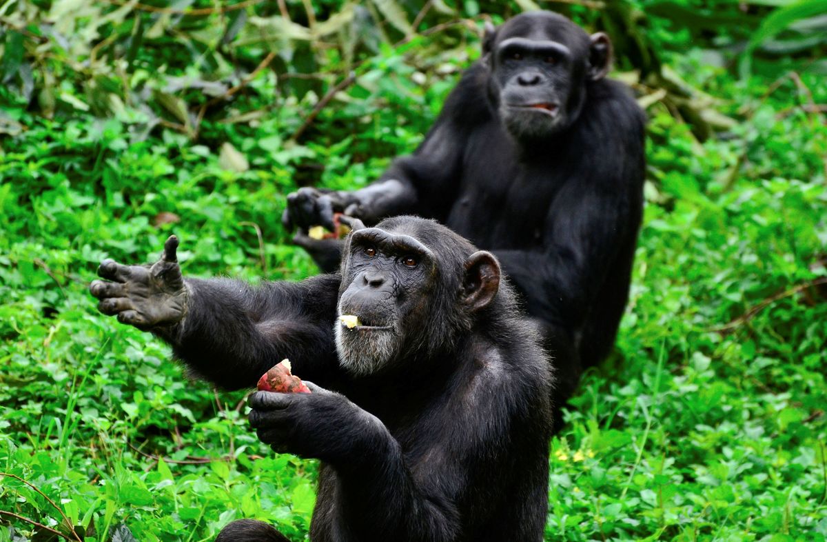 Chimpanzees are seen at the Uganda Wildlife Conservation Education Center (UWEC) amid the lockdown as part of the measures taken to prevent the spread of the coronavirus disease (COVID-19), within Wakiso district, in Entebbe, Uganda April 20, 2020. REUTERS/Abubaker Lubowa