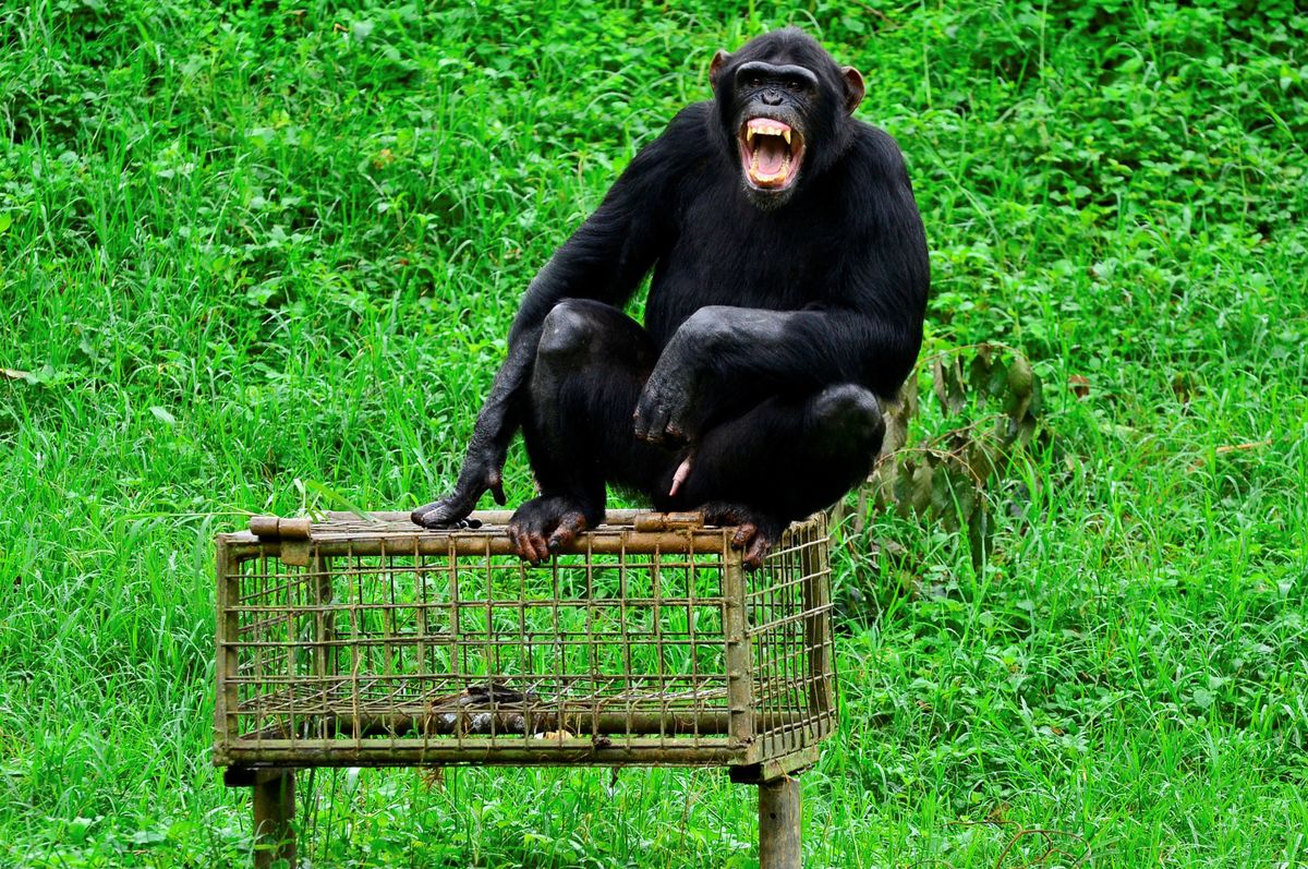 A chimpanzee is seen at the Uganda Wildlife Conservation Education Center (UWEC), amid the lockdown as part of the measures taken to prevent the spread of the coronavirus disease (COVID-19), within Wakiso district, in Entebbe, Uganda April 20, 2020. REUTERS/Abubaker Lubowa