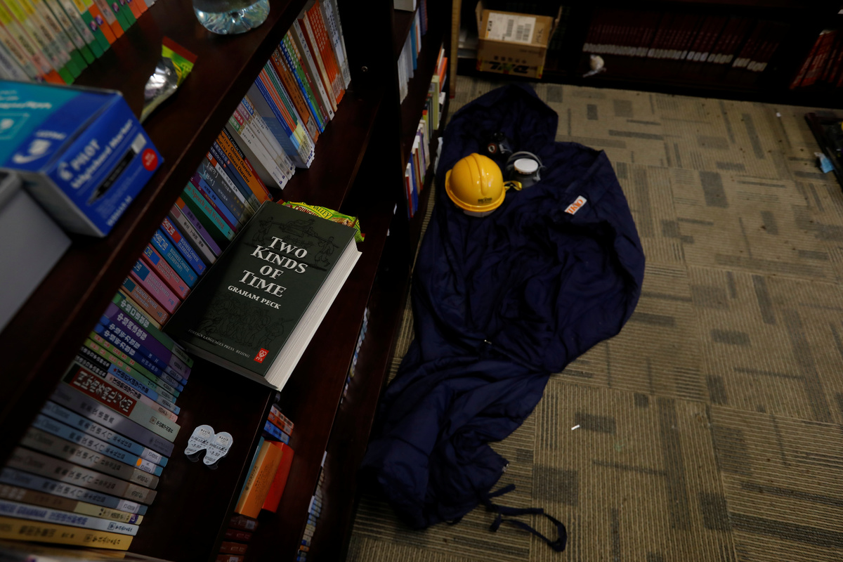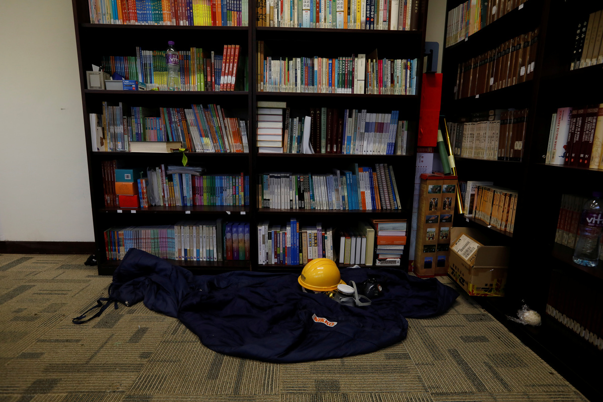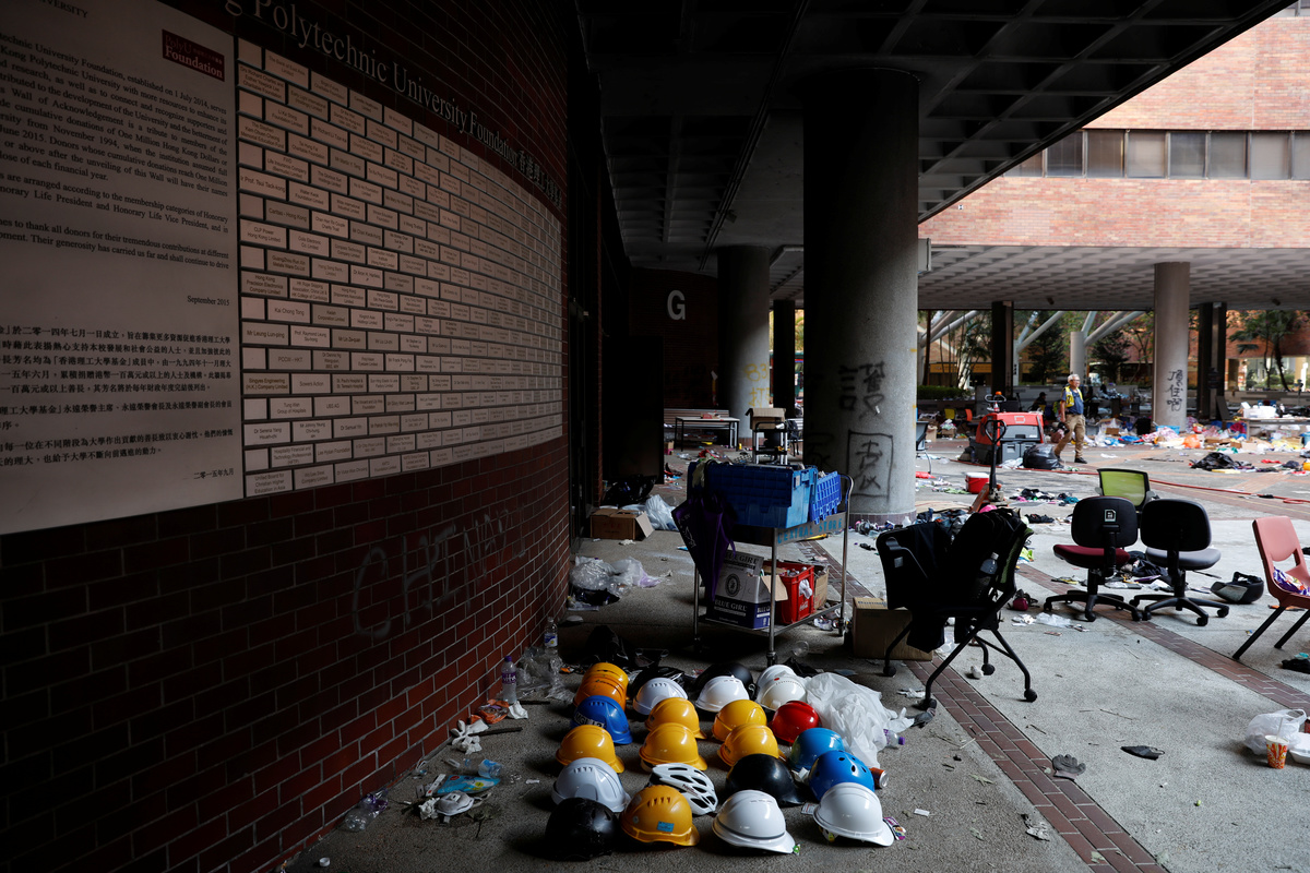 HONG KONG (Reuters) - Inside the increasingly empty and trashed campus of a Hong Kong university only a handful of activists held out on Thursday as they desperately searched for ways to escape or hide while squads of police encircled the grounds.