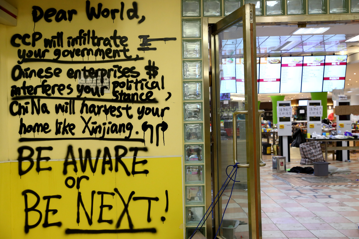 In the past two weeks, protesters have torched buildings, a footbridge, mass transit stations and toll booths at the city's Cross Harbour Tunnel linking Hong Kong island to Kowloon.