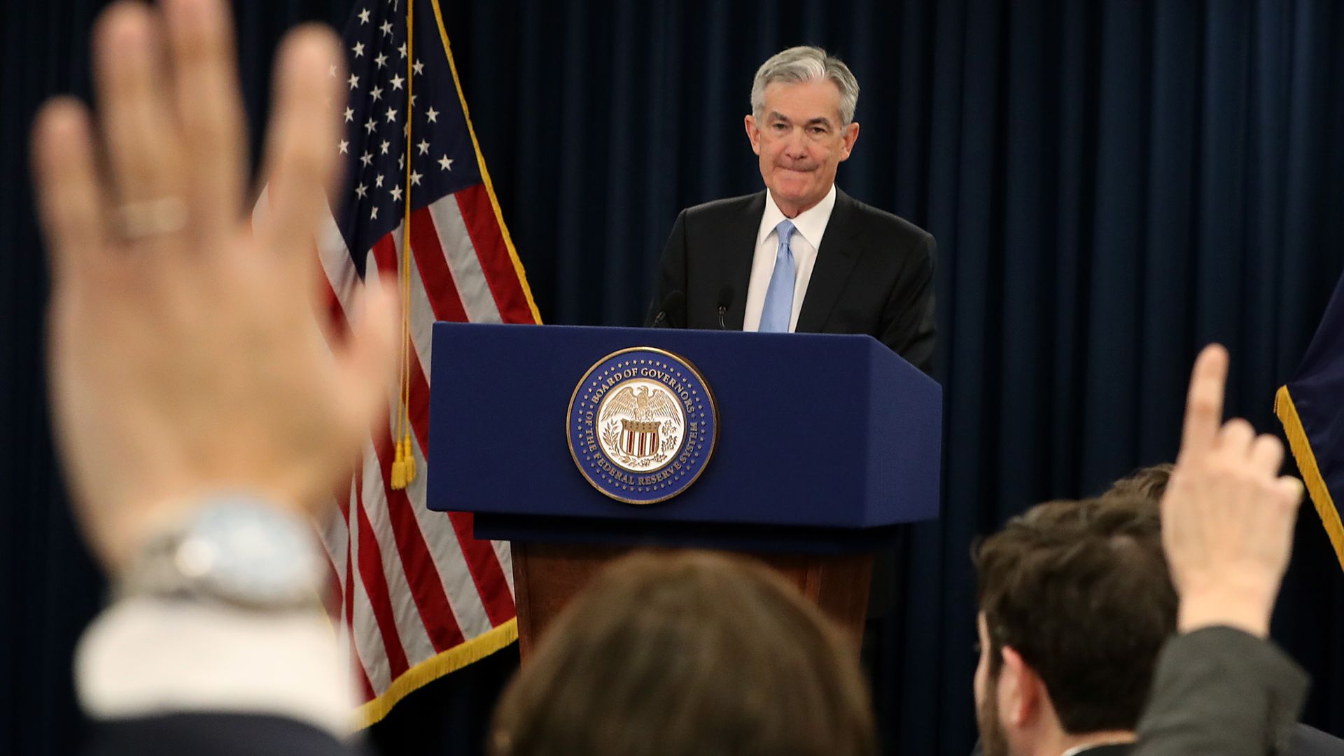 Between the lines: In a change to its policy statement, the Fed acknowledged inflation was "running below" its 2% target. However, speaking to reporters on Wednesday, Fed chair Jerome Powell said "transitory" factors were to blame for muted inflation — disappointing investors who were betting low inflation would push the Fed to cut rates this year.