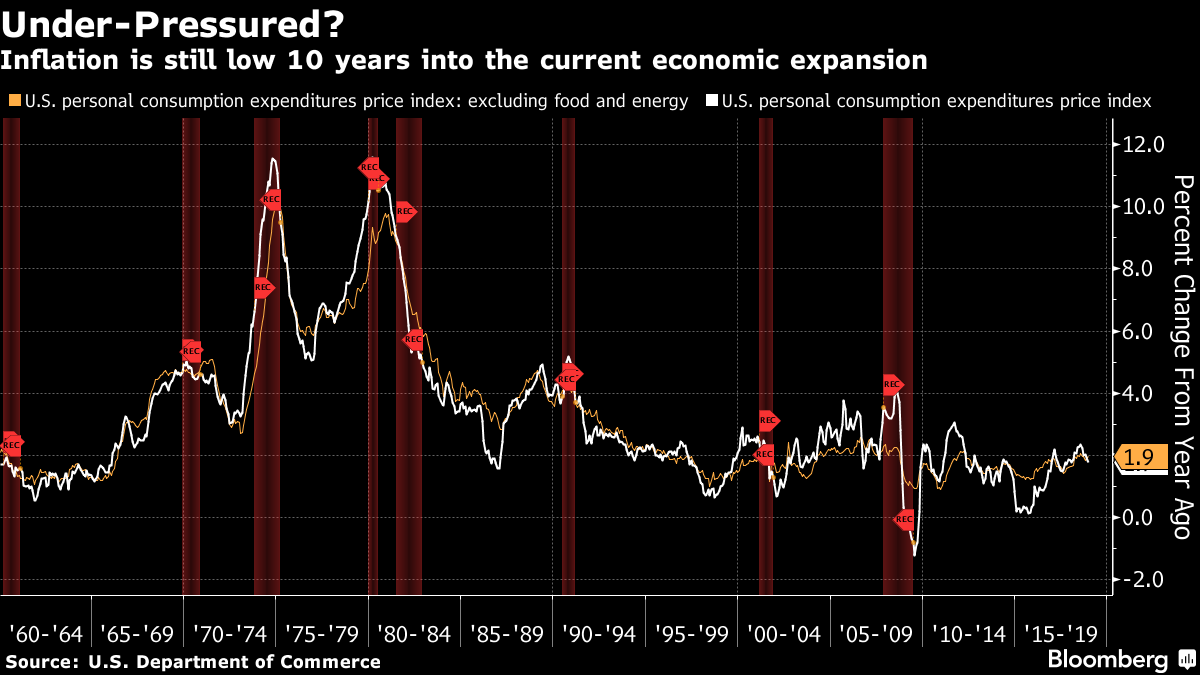 Despite that, the tepid progress has come as a surprise to U.S. policy makers, who believed America’s hot labor market would push price indexes higher, faster. Officials had expected inflation to climb to 2.1 percent in 2020 and 2021 -- until Wednesday. They no longer expect to overshoot their 2 percent goal at all, their newest economic projections show.