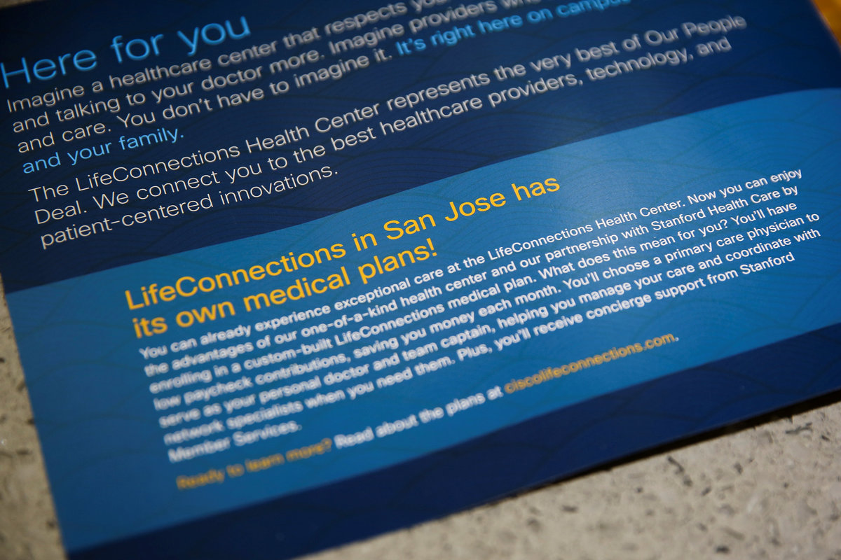 At the center of it all is a spacious clinic inside Cisco's San Jose campus, the first point of contact for many employees and their families. They often see Dr. Larry Kwan, a Stanford Health general physician who rubs shoulders with workers in the cafeteria and company gym.