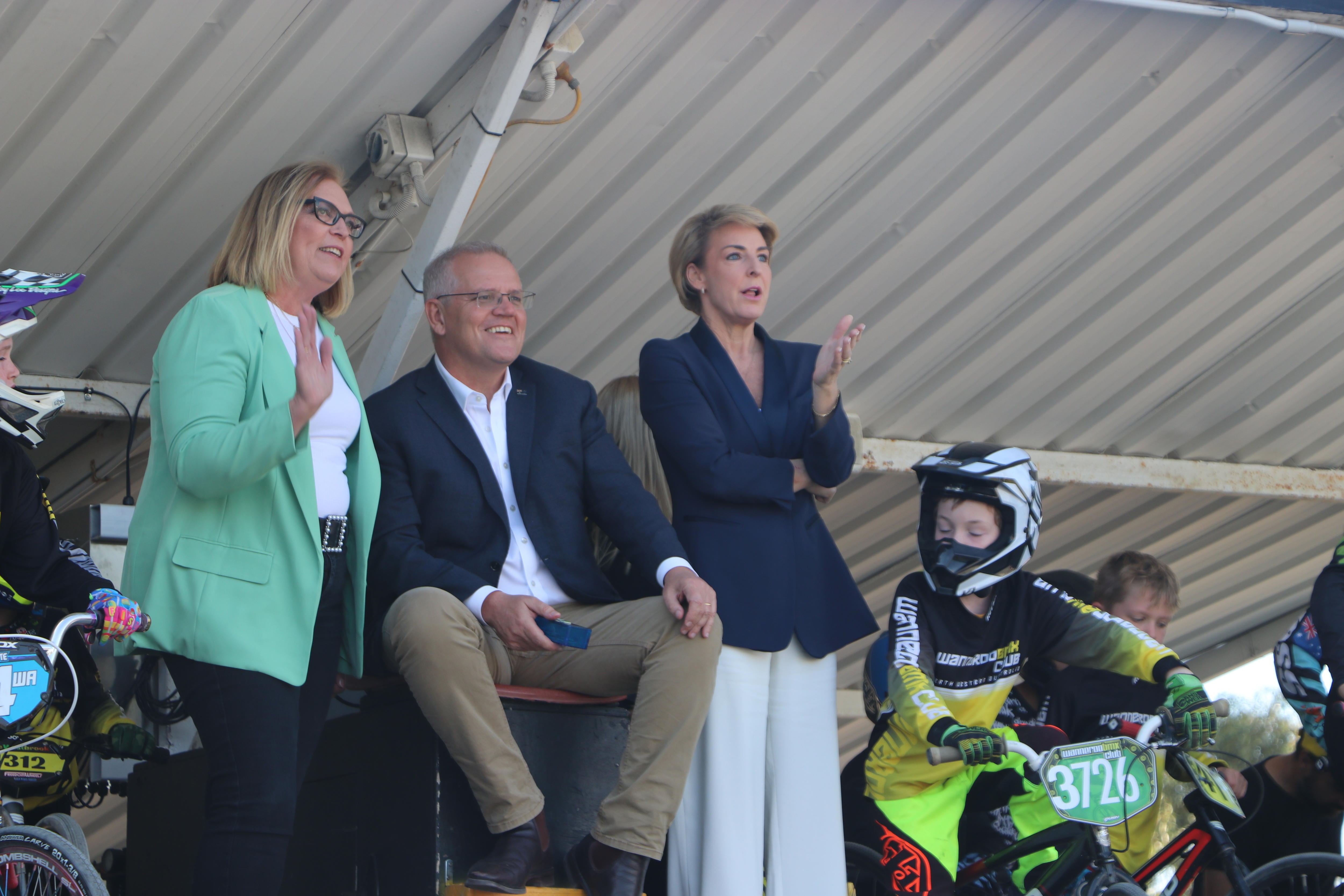 Ms Aitken was with Prime Minister Scott Morrison when he went to the Wanneroo BMX Club in Pearsall, ahead of an announcement from Attorney General Michaelia Cash of $1.6 million in funding support.
