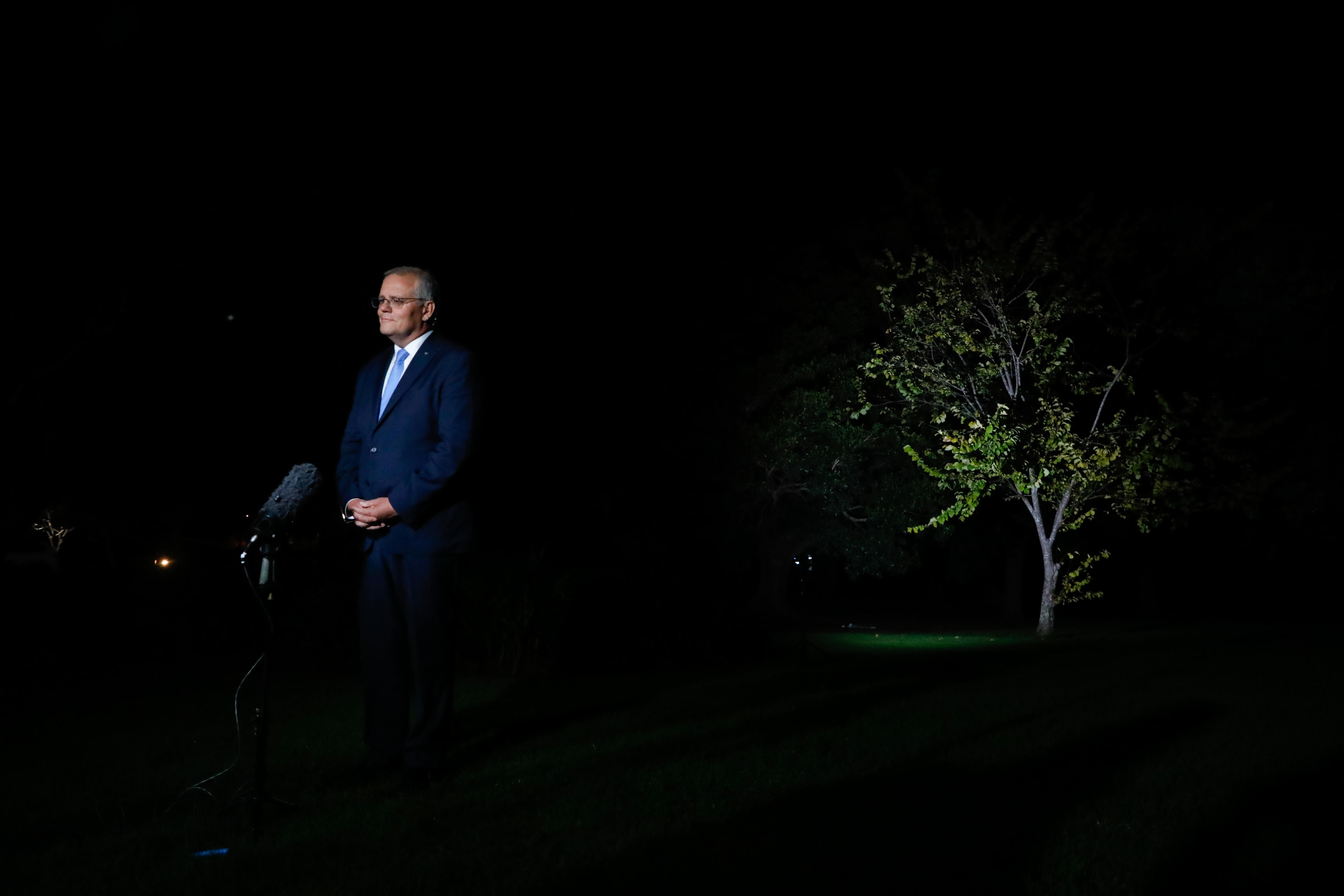 Scott Morrison shortly after visiting the Governor-General in Canberra. (ABC News: Ian Cutmore) Mr Morrison on the first evening of election campaign. (ABC News: Nick Haggarty)