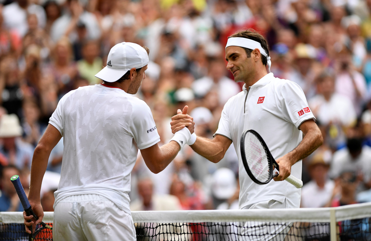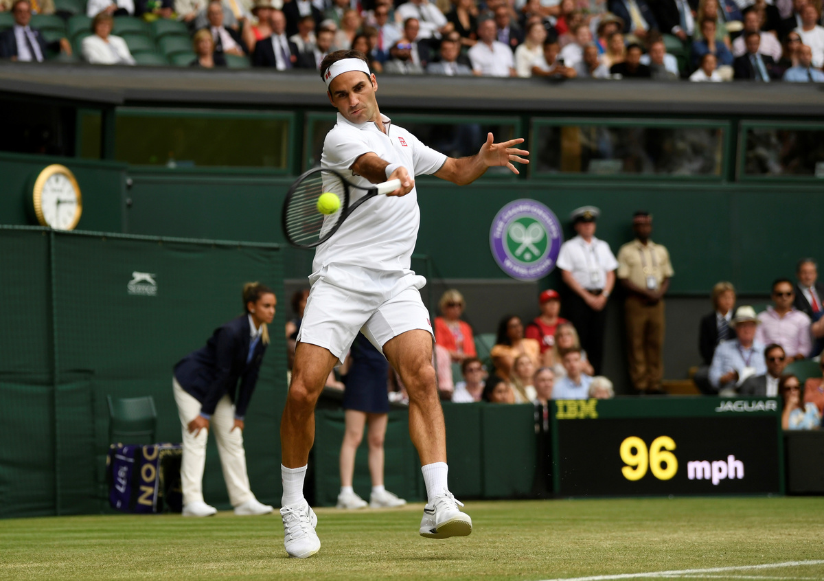 LONDON (Reuters) - Roger Federer kept tennis statisticians on their toes on Saturday as he mopped up a few more records by trampling all over Lucas Pouille's dreams in a rip-roaring 7-5 6-2 7-6(4) win to reach the fourth round of Wimbledon.